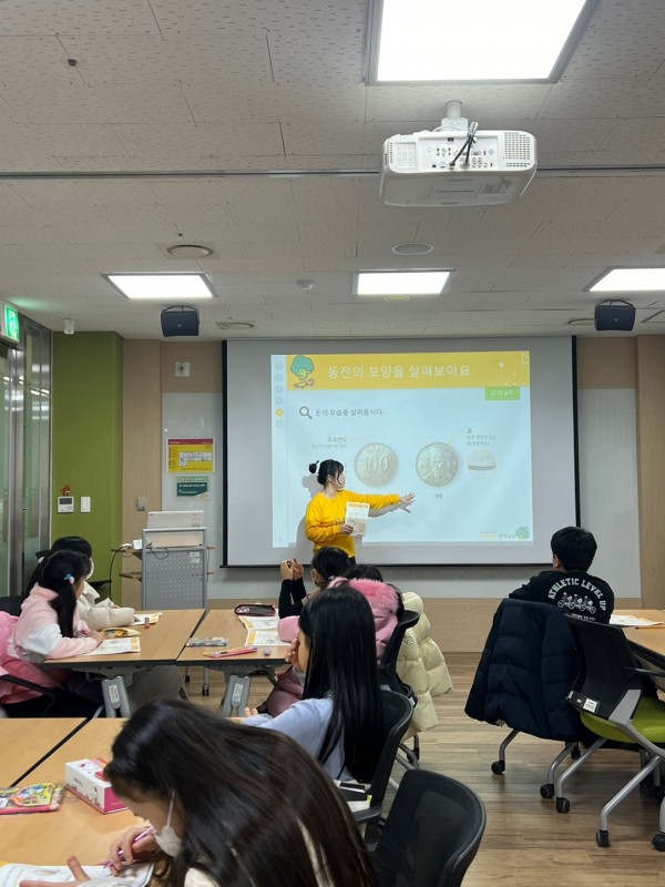 1교시에는 김민정 단원이 "내 친구 화폐" 교재를 통해 수업을 진행하였습니다.