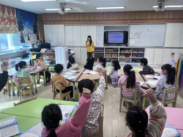 20페이지가 넘는 분량을 집중력있게 잘 전달하기 위해 옹기종기 모여 함께 읽는 방식을 택하였고, 그 결과 아이들은 가까이서 그림과 글을 보며 적극적으로 동화의 내용에 빠져드는 모습을 볼 수 있었습니다.