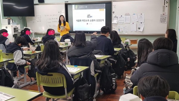 1교시에는 김규리 단원이 수업을 진행하였으며, 교재를 바탕으로 소득의 유형, 합리적 소비에 대해 설명하고, 관련 영상을 시청하였습니다. 학생들이 알고 있는 금융 관련 속담을 떠올리고 발표하게끔하여 학생의 수업 참여를 높이도록 하였습니다. 이를 통해 학생들과 충분히 의사소통하며 학생들이 흥미를 가지고 내용을 잘 따라올 수 있도록 하였습니다.