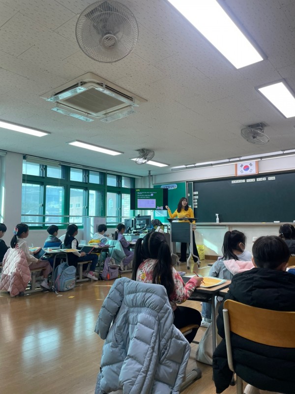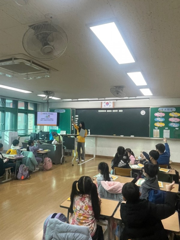 1교시는 강예지 단원이 진행했습니다. 먼저, 아이들이 가장 생소하다고 느낄 것 같은 단어인 "금융"에 대해 설명해주었습니다. 은행에 예시를 들어 설명해주었고 돈의 이동에 대해 설명해주기 위해 만원이의 이야기를 함께 읽었습니다. 만원이의 이야기를 읽을 때, 아이들이 집중할 수 있도록 한 명씩 번갈아가면서 읽도록 지도하였고 아이들이 방향을 잃지 않도록 돈이 이동할 때마다, 이동 장소를 정리하는 피피티를 중간 중간 넣어 아이들이 쉽게 이해할 수 있도록 노력했습니다. 또한, 아이들이 농협과 수협에 해당하는 내용은 너무 어려워할 것 같아 '이런 곳도 있다'는 식으로 얕게 설명해주고 넘어갔습니다. 통장 만들기 활동에서는 아이들이 서명(싸인)이 없다고 하여 이름을 적거나, 본인을 대표하는 싸인으로 새로 만들어도 괜찮다고 하며 아이들을 도와주었습니다.