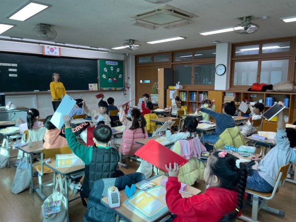 1교시 : 수업을 진행하기 전 지난 차시 수업 시간에 배운내용에 대해 간락하게 설명하고 만원이의 이야기를 읽었습니다. 피피티에 내용과 그에 맞는 그림, 돈이 이동하는 애니메이션 효과를 사용해 아이들이 즐겁게 들을 수 있도록 하였습니다. 1학년 아이들의 수준을 고려하여 수협과 같은 파트이 내용은 제외하고 아이들에게 길을 걷다가 본 적이 있는 은행은 무엇이 있는지를 자유롭게 발표하는 내용을 추가해 진행했습니다. 통장만들기를 진행할 때 아이들이 서명이 무엇인지 물어보는 경우가 있었어서 싸인과 도장을 찍었을 때의 모습을 칠판에 그려주며 설명했고 시간이 여유로워, 2교시 수업으로 퀴즈를 진행할 때 맞출시 100원씩 통장에 기록하는걸 미리 연습하는 연습 퀴즈(뒤에 계신 보조 선생님 이름, 별명 맞추기)를 진행했습니다. 맞춘 퀴즈 수 만큼 100원을 기록하는것에 어려움을 느끼는 아이들이 종종 있었기에 미리 연습게임을 해보는 것이 무척 효과적이었습니다.