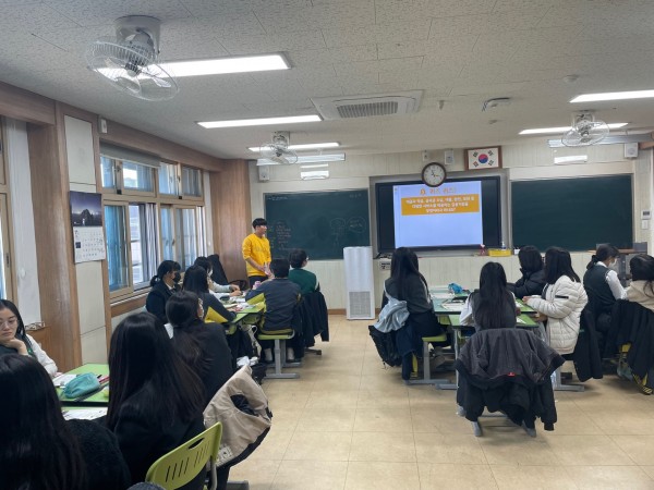 1교시: 조용균 단원이 금융의 의미를 설명하고 다양한 금융기관의 역할,유형 및 이용 방법에 대해 학생들이 이해하기 쉽게 설명했습니다. 그리고 저축의 필요성과 은행의 대표적인 저축상품에 대해 명확하게 설명하였고, 저축과 투자의 차이점이 무엇인지 알아보았습니다. 끝으로 현명한 투자자가 되기 위해서는 다양한 자산에 분산하여 투자해야 함을 강조하였습니다.