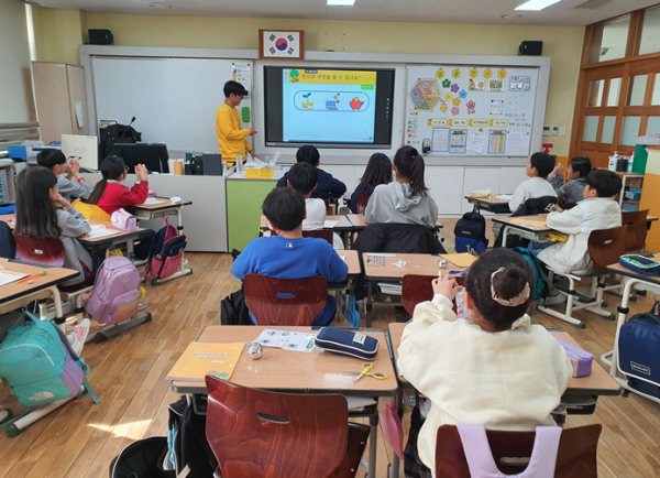 2교시에는 1교시에 진행했던 내용을 바탕으로 골든벨 퀴즈를 잠시 푼 후, 오지현 단원이 '돈을 벌어요' 보드게임을 진행하였습니다. 이후 저축은 알고 있는 것도 중요하지만 실천이 더 중요하다는 것을 강조하며, 학생들의 소감을 듣고 마무리하였습니다.