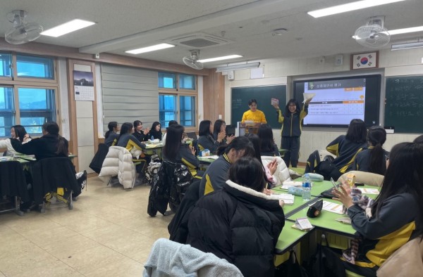 1교시: 조민지 단원이 교재 수업을 진행했습니다. 빙고 게임과 자발적인 경험을 발표하는 수업으로 학생들의 흥미를 유도해 수업했습니다.