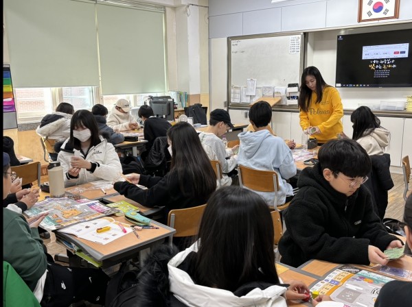 2교시: 김세진 단원이 교재를 가지고 금융의 의미와 금융기관의 역할, 저축과 투자의 의미와 중요성을 바탕으로 수업을 진행하였습니다. 내용을 쉽게 받아들일 수 있도록 여러 예시와 질문을 통해 소통해보았고 목차를 다시 살펴보며 수업 내용을 정리해보았습니다.