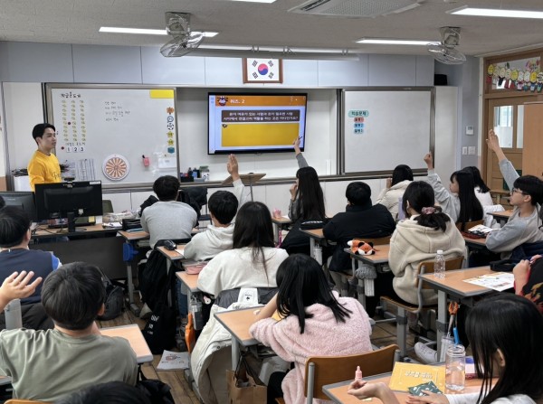4교시: 배준호 단원이 교재를 가지고 금융의 의미와 금융기관의 역할, 저축과 투자의 개념과 중요성을 바탕으로 수업을 진행하였고 자칫 어려울 수 있는 부분들은 학생들의 경험을 바탕으로 질문을 주고받으며 소통하였습니다.