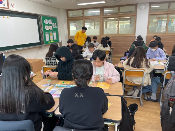 2교시: 최영우 단원이 교구 수업을 진행했습니다. 학생들이 질문하였던 보험을 통해 돈을 받을 수 있는 이유를 설명하고, 학생들이 다툼 없이 수업을 진행할 수 있도록 지도했습니다. 쉬는 시간에 미리 조를 만들어 교구 수업할 수 있도록 원활히 준비했습니다.