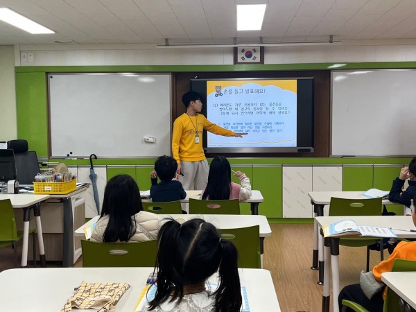 1교시: 주하영 단원과 아이들에게 책을 PPT를 통해 읽어주었습니다.