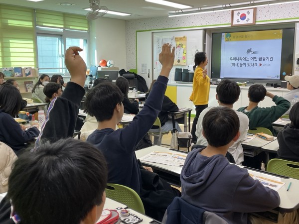 1교시: 1교시에는 김단흘 단원이 이론 수업을 진행하였습니다. 금융기관의 역할과 종류, 저축&투자에 대해 공부하고 함께 퀴즈를 맞히는 시간을 가졌습니다.