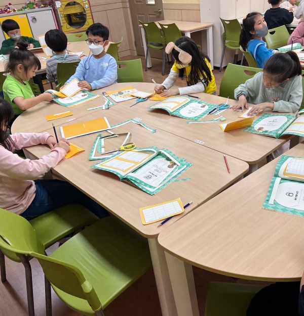 장수현 단원은 금융에 대한 뜻과 금융기관에 대해서 수업을 진행하였고 통장에 대해 설명해주며 아이들과 통장을 만들며 1교시를 끝마쳤습니다.