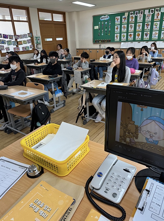 1교시: 금융, 투자의 개념과 금융회사와 금융회사의 종류들을 여러 예시를 들어서 이해하기 쉽도록 설명함. 또한 직접투자와 간접투자의 차이점에 대해 아이들에게 설명함