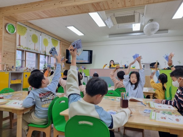 교구를 사용해 돈의 크기를 비교해 보고, 합리적 소비를 위해 고려해야 할 네가지 사항에 대해 수업하였습니다. 아이들이 돈 모양 교구를 가지고 수업하는 것을 좋아하였습니다. 단순히 천원, 만원 등 한가지 종류의 지폐로 돈 조합하는 것은 쉬워했으나 여러가지 지폐를 조합해 가격을 만드는 것을 어려워하여 추가 설명을 하였습니다.