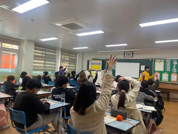 2교시: 이정만 단원이 진행하였다. 앞서 배운 내용을 복습하는 의미로 퀴즈와 게임을 하는 시간을 가졌으며 게임을 하면서 은행, 보험회사, 증권회사, 소득 등 어떤 일을 하고 있는지 알 수 있게 되었다.