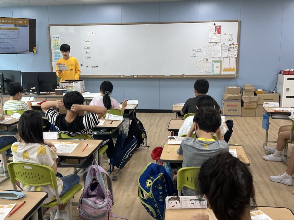 2교시: 김재원 단원이 1교시에서 배웠던 신기한 돈과 합리적 소비의 개념을 다시 한번 설명하여 복습한 후 '돈카드' 게임을 진행하였습니다. 활동에서 모든 학생이 참여하도록 교실을 돌아다니며 지도하였습니다. 끝으로 합리적 소비가 왜 중요한지에 대해 한 번 더 상기시키며 교구수업을 마무리하였습니다.