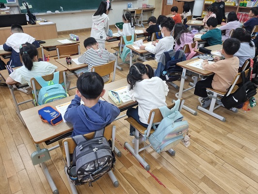 1교시: 화폐의 정의에 대해서 알기 쉽게 설명하고 돈의 개념, 기능에 대해서 설명하였다. 대상이 초등학생 1학년인 만큼 예시를 들어가며 이해를 도왔고, 세계 각국의 화폐를 설명할 때 미리 준비해온 외화를 아이들에게 직접 보고 만질 수 있는 시간을 가졌다. 또한 동전과 지폐의 모양을 살펴보며 화폐는 무엇으로 만들어졌고, 화폐가 이렇게 만들어진 이유에 대해서 부가적인 설명을 하는 시간을 가졌다.