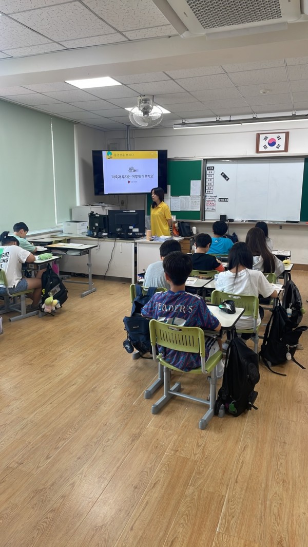 1교시: 김단흘 단원이 진행하였다. 금융기관에 대해 소개하고 금융기관의 6가지의 종류와 일에 대해 설명하였다. 간접투자와 직접투자를 구분할 수 있도록 하였으며 각 어떤 것이 예시 상품으로 있는지도 알 수 있게 되었다. 특히 저축과 투자의 차이와 투자 시 책임이 본인에게 있음을 강조하였다.