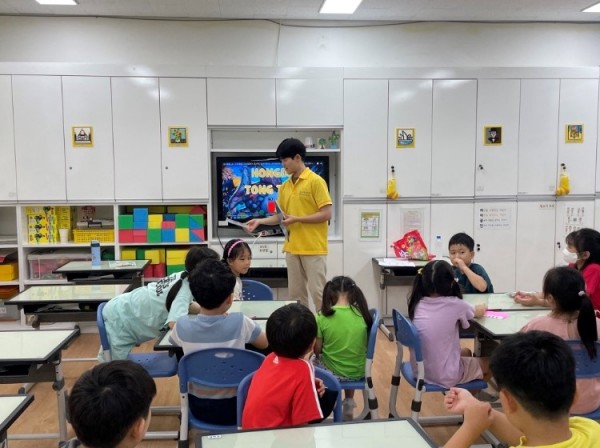 2) 통합소감 및 느낀점 : 3주간에 걸쳐서 수업이 진행되었고 돌봄 교실 특성상 아이들 구성이 항상 일정하지 않으며 다른 방과후 교실 스케줄에 맞추다보니 수업 중간에 가거나 오는 친구들이 많아서 아이들과 라포 형성에 여려움을 겪었습니다. 아이들 교재도 20권 넘게 준비했지만 총 40명이 되는 아이들이 각자의 일정에 맞춰서 움직이다보니 교재에 이름을 써 놓으면 다른 아이들에게 줘야할 교재나 교구가 부족한 경우도 많이 있었습니다. 그리고 신도초등학교와 마찬가지로 수업에 잘 참여하고 말을 잘 듣는 아이들이 있는가하면 질문이 많거나 장난치는 것을 너무 좋아하는 아이들이 종종 있어서 수업의 흐름이 끊어지는 경우가 있었는데 이 부분이 가르치면서 어려움을 느꼈던 부분이었습니다. 만약 다음에도 이러한 수업을 진행하게 된다면 위에서 언급한 어려움을 해소하기 위해 교재나 교구를 넉넉하게 준비하고 원활한 수업 진행을 위해 2명의 교사는 반드시 필요할 것이라는 생각이 들었습니다. 그리고 저학년인만큼 아이들마다 아는 정도의 편차도 심하기 때문에 이를 고려하여 각 아이들의 눈높이에 맞게 관심을 갖고 가르쳐주는 것이 매우 중요하다는 것을 느끼게 되었던 시간이었습니다.