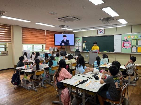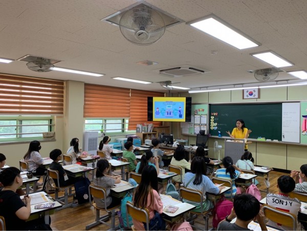 1교시는 최윤채 단원이 진행하였습니다. 먼저 은행에 가본 경험이 있는지 물어보았고, 은행에 무엇이 있는지에 대해 답하는 시간을 가졌습니다. 그 후 금융에 개념에 대해 알려주었습니다. 어려울 수 있기에 예시 상황을 만들어 쉽게 이해할 수 있도록 노력했습니다. 금융회사의 종류와 각각의 역할에 대해 설명하였고, 설명을 하면서 해당 금융 회사에 대한 배경지식이 있는지 물어보며 관심을 가질 수 있도록 하였습니다. 저축과 투자에 대해 알아보는 부분에서는 영상 뒤에 퀴즈를 통해 이해하고 있는지 확인하였습니다. 어려울 수 있는 저축의 종류에 쉽고 짧게 설명하였습니다. 투자에 대해 배우고 직접투자와 간접투자를 구분하는 방법에 대해 배웠습니다.