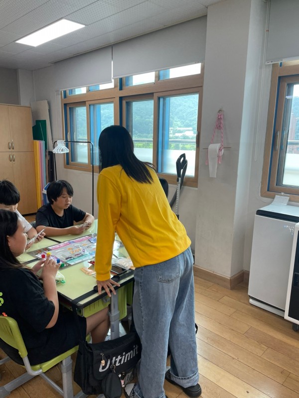 2교시는 오혜진 단원이 진행하였습니다. 골든벨 퀴즈와 금융존 게임을 진행하였습니다. 금융존 게임을 통해 학생들이 금융기관의 역할과 저축 및 투자 개념 등 수업내용을 재미있게 복습할 수 있도록 진행하였습니다.