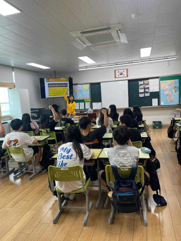 4교시는 김태형 단원이 진행하였습니다. 골든벨 퀴즈와 금융존 게임을 진행하였습니다. 금융존 게임을 통해 학생들이 금융기관의 역할과 저축 및 투자 개념 등 수업내용을 재미있게 복습할 수 있도록 진행하였습니다.
