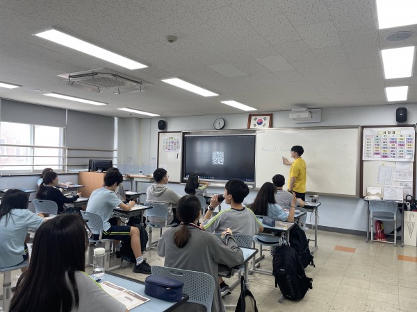 1교시 : 박하영 단원이 교재 수업을 진행하였습니다. 교재와 피피티 자료 내용을 충실하게 아이들에게 전달하고, 확인 퀴즈를 통해 지식 전달이 명료하게 되었는지 확인하는 시간을 가졌습니다.