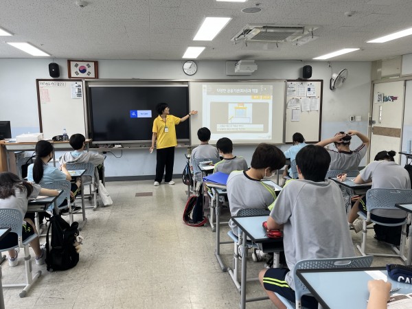 2교시 : 임지현 단원이 크라우드 펀딩 게임과 빙고 게임을 진행하였습니다. 크라우드 펀딩 게임을 진행하기 전에 아이들이 이해하기 쉬울만한 예시를 들어 설명해주었고 이를 바탕으로 모둠별로 게임을 진행하였습니다.