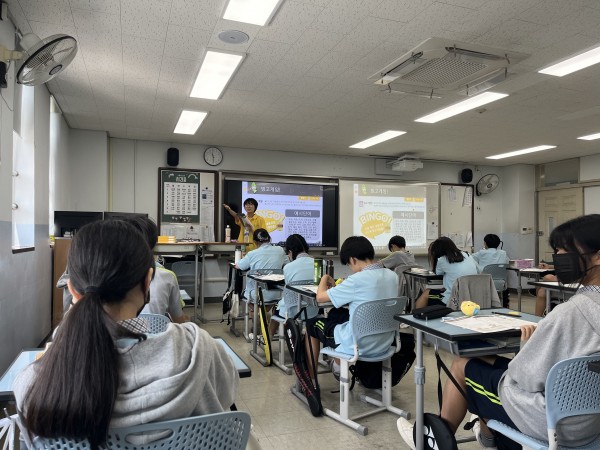 2교시 : 박시현 단원이 크라우드 펀딩 게임과 빙고 게임을 진행하였습니다. 아이들이 빙고 게임에 고루 참여할 수 있도록 하였으며 크라우드 펀딩 제안서를 작성할 때 어려움을 겪는 모둠이 제안서를 잘 작성하도록 도와주었습니다.
