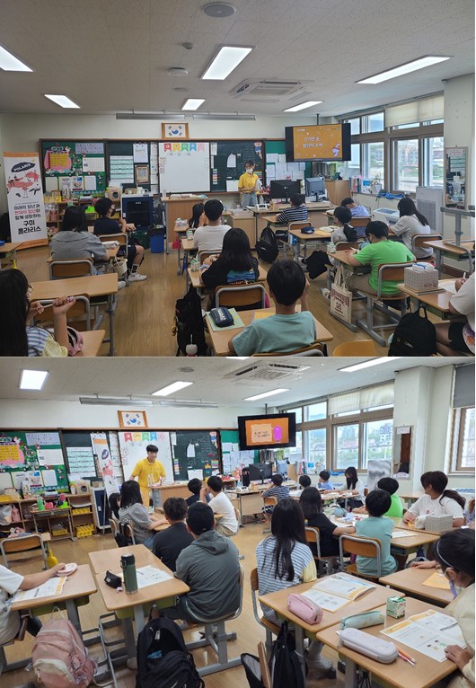3교시: 이승하 단원이 저축과 소비를 주제로 수업을 진행하였다. 또한 해외에 갈 때는 돈을 환전하는 것이 필요하다는 것과 환율이 매일 변하는 것임을 알려주었다. 아이들에게 합리적 소비를 하는 방법과 교재를 통해 각자의 소비 습관을 적고 발표하는 시간을 가졌다. 퀴즈를 통해 앞서 배운 내용을 복습하였다.