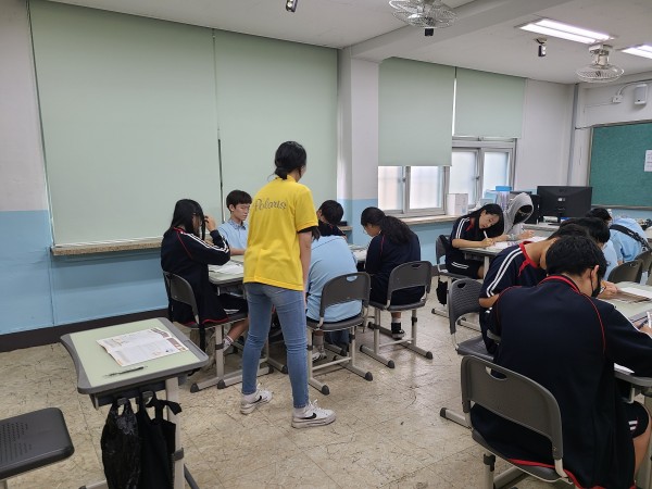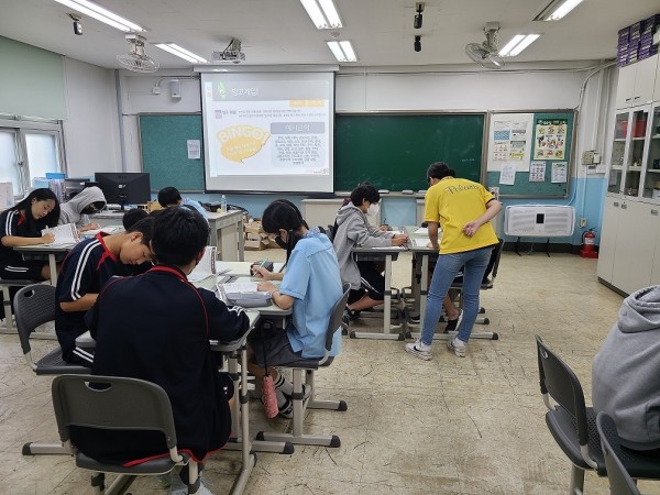 2교시 : 임지현 단원이 크라우드 펀딩 게임과 빙고 게임을 진행하였습니다. 크라우드 펀딩 게임을 설명하기 전 실생활 예시를 들어주었고 그를 바탕으로 모둠별로 크라우드 펀딩을 제작해보도록 도와주었습니다.