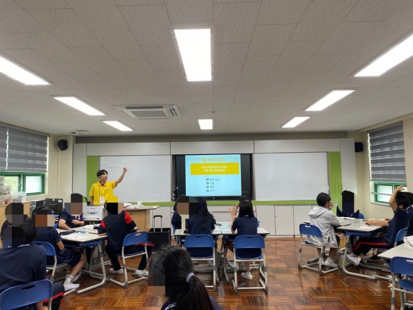 2교시: 권혁민 단원이 1교시에 배운 내용을 바탕으로 골든벨 퀴즈를 진행하였다. 그리고 튼튼한 자산관리 아름다운 우리집 게임을 통해 아이들에게 합리적 소비와 자산관리 수업 내용을 복습하도록 하였다.