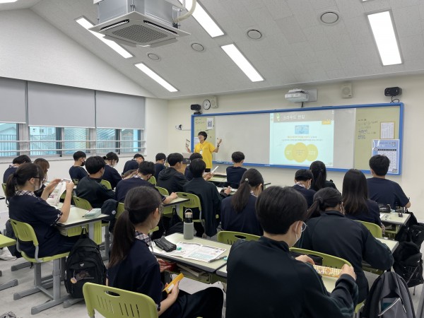 1교시 : 박시현 단원이 '금융이 궁금해, 저축과 투자를 부탁해.' 수업을 진행하였습니다. 아이들이 모를만한 단어는 아이들이 뜻을 추측할 수 있도록 하며 내용을 이해하기 쉽도록 수업 하였습니다.