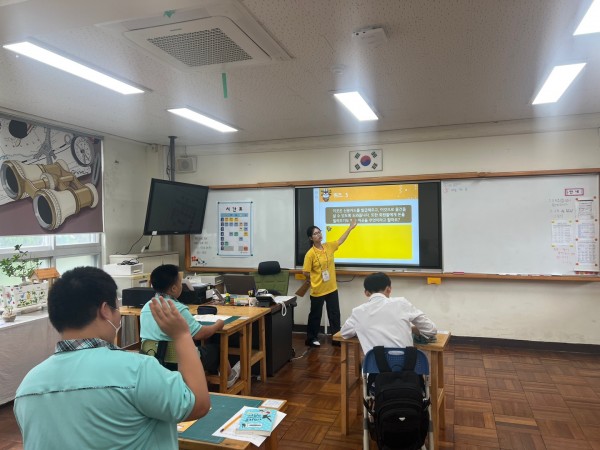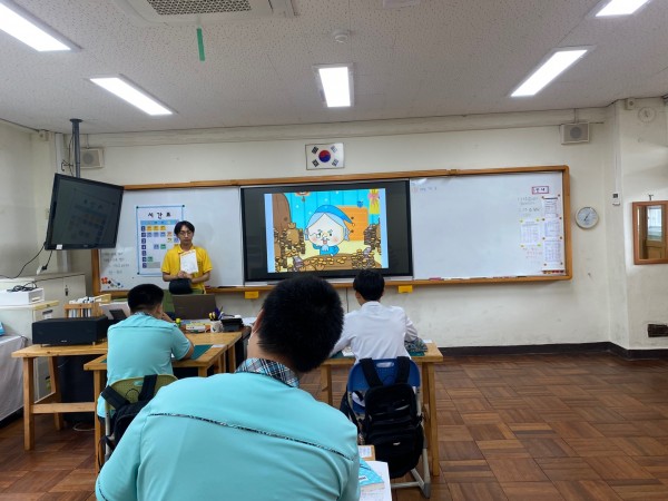 2교시: 신유정 단원이 '골든벨 퀴즈'와 금융 zone 게임으로 학생들의 복습을 도왔습니다. 다함께 게임을 즐기며 오늘 배운 내용을 다시 한 번 정리하고 게임에서 저축과 투자를 다시금 구분하는 시간을 가졌습니다.