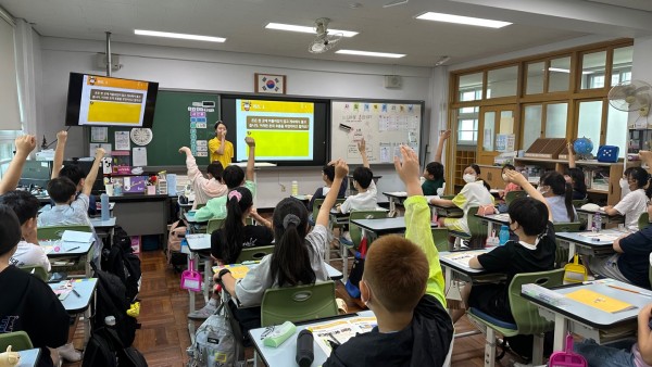 2교시: 백지민 단원이 '골든벨 퀴즈'와 금융 zone 게임으로 학생들의 복습을 도왔습니다. 오늘 배운 내용을 다시 한 번 정리하고 게임에서 저축과 투자를 다시금 구분하는 시간을 가졌습니다.