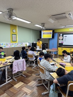 2교시: 임정열 단원이 2교시를 진행했습니다. 이론 수업을 토대로 골든벨 퀴즈를 진행하여 이론 수업에 대한 이해도를 확인하고 추가 설명을 통해 이해를 확실히 할 수 있도록 확인하고 넘어갔습니다. 또한 아이들이 수업 내용을 활용하여 직접 경험해볼 수 있는 돈카드 게임을 통해 세계의 화폐에 대해 배웠던 이론을 재미있게 익힐 수 있도록 진행하였습니다.