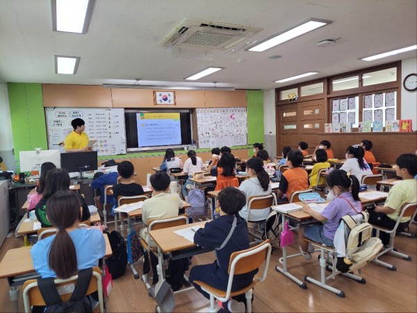 1교시: 김유호 단원이 저축과 소비를 주제로 수업을 진행하였다. 아이들에게 올바른 소비 습관이 무엇인지와 합리적인 소비를 하는 방법에 대해 설명하였다.