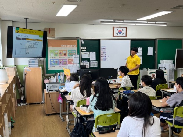 2교시는 오정택 단원이 금융존 게임을 통해 여러 금융기관에서 발생하는 상황을 학습하도록 도왔습니다