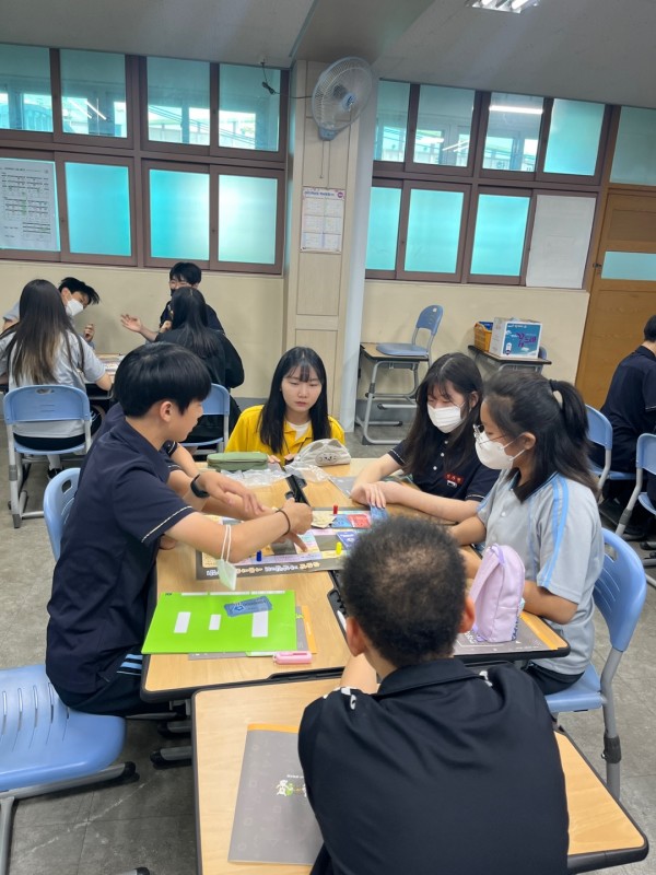 2교시: 임지현 단원이 교구 수업을 하였습니다. 1교시에 배운 합리적 소비를 게임에 적용시켜 교구를 활용하여 경제 교육 내용을 아이들이 직접 상기할 수 있게 하였습니다.
