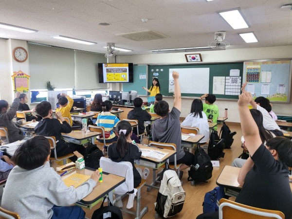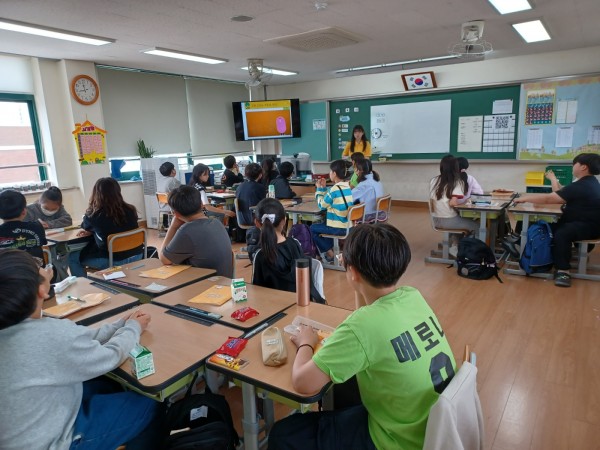 2교시 : 권준희 단원은 금융회사, 저축, 투자 관련한 골든벨 퀴즈를 통해서 학생들이 직접 정답을 발표하는 시간을 가졌습니다. 틀린 답은 함께 정정하는 시간을 가졌고, 후에 금융 zone 보드게임을 조별로 진행해 보는 시간을 가졌습니다.