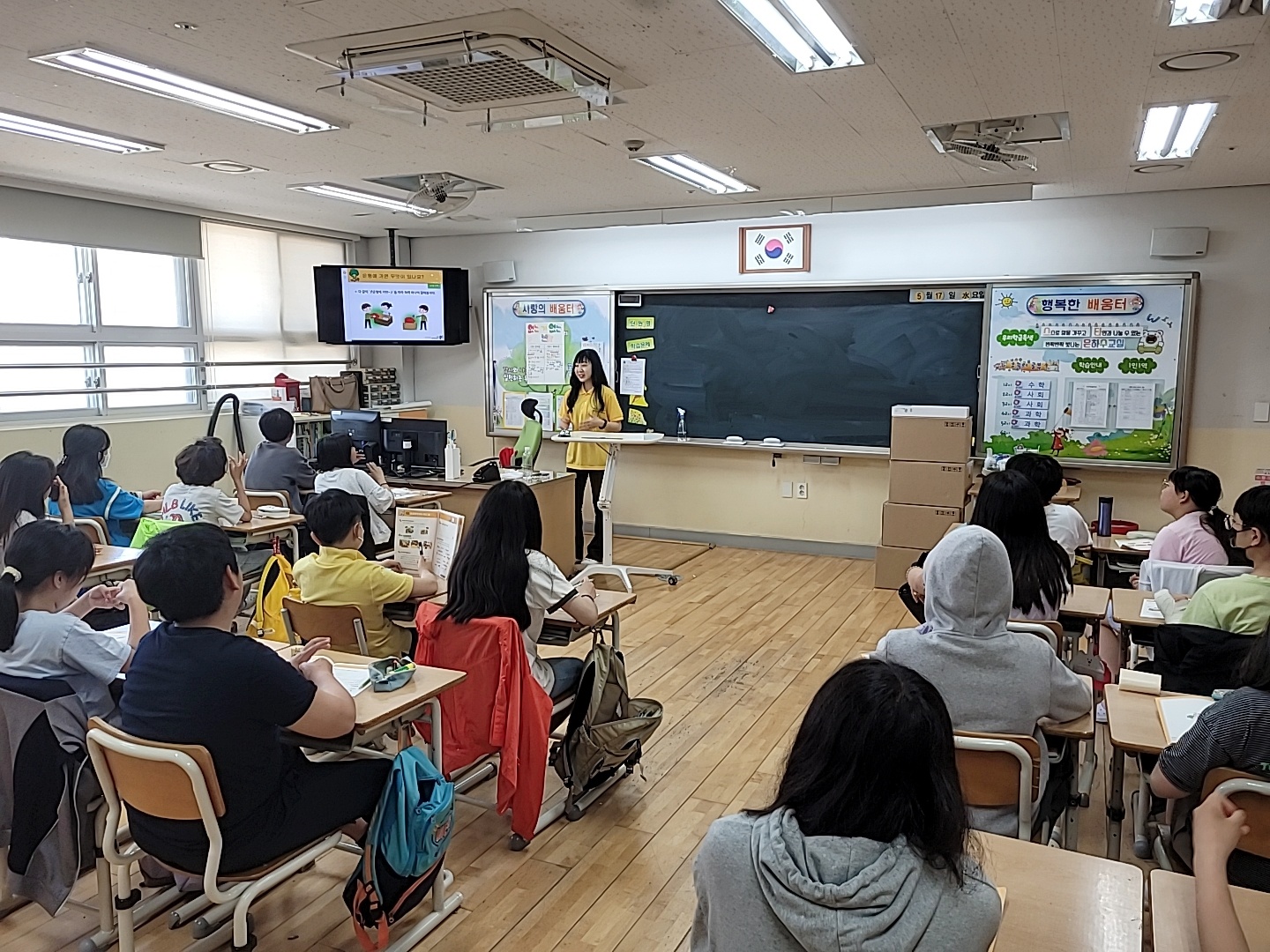 퀴즈 후 게임방법 영상시청과 부연설명 후 30분 간 게임을 진행했습니다. 부루마블처럼 아이들이 익히 알고 있는 게임방식이라 진행하는데 있어 큰 어려움은 없었습니다.