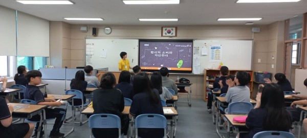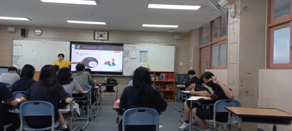 1교시: 박시현 단원이 ‘합리적 소비와 자산관리’에 대해 교재 수업을 진행했습니다. 어려운 단어는 풀어서 설명하며 아이들이 쉽게 이해할 수 있도록 수업을 진행하였습니다.