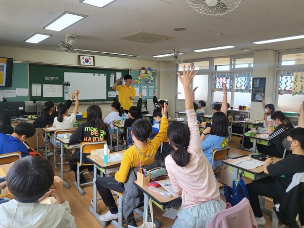 2교시: 최진수 단원이 금융에 관한 수업에 이어서 골든벨 퀴즈를 통해서 복습을 하고 퀴즈의 오답에서 대해서 다양한 시각으로 바라보고, 학생들이 더욱 적극적으로 참여할 수 있도록 다양한 의견을 나누었습니다. 이후 금융 보드게임을 통해서 실전에서 금융을 통해 화페의 이동에 대하여 교육하였습니다.