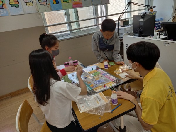 내용: 세종 한결초등학교 4학년 바름반 학생들에게 두 교시 동안 “금융을 알고 투자를 해요”라는 주제로 이론 및 교구 경제교육을 실시했습니다. 1부 이론은 장지현 단원, 2부 이론은 조성건 단원이 진행하였고 금융ZONE 보드게임은 같이 설명을 하고, 세 모둠씩 맡아 학생들의 게임 진행을 지도했습니다.