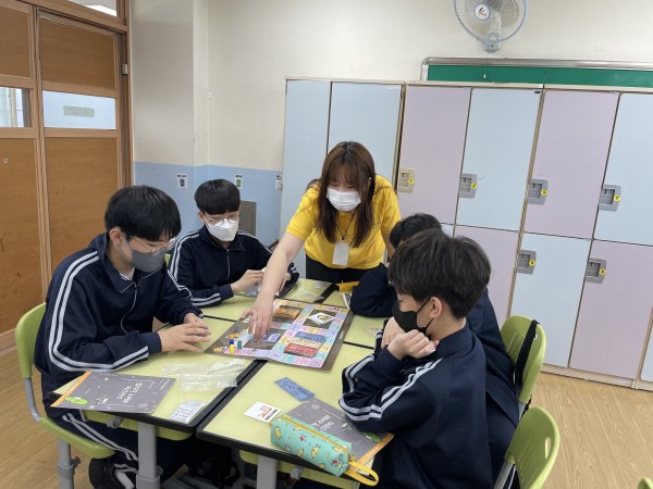 느낀점: 박하영 단원님께서 1교시 때 훌륭한 수업을 해주셔서 2교시 진행의 부담이 적었지만, 첫 수업이었던만큼 완벽하지 못했던 것 같아 아쉬움이 남습니다. 아이들이 생각했던 것보다 더 게임을 좋아하고, 재밌어해서 뿌듯했습니다. 이번 강남중학교에서 배웠던 점들을 토대로 아이들과 더욱 소통하고, 아이들의 의견을 귀담아듣는 수업을 진행해야겠다고 생각하였습니다.