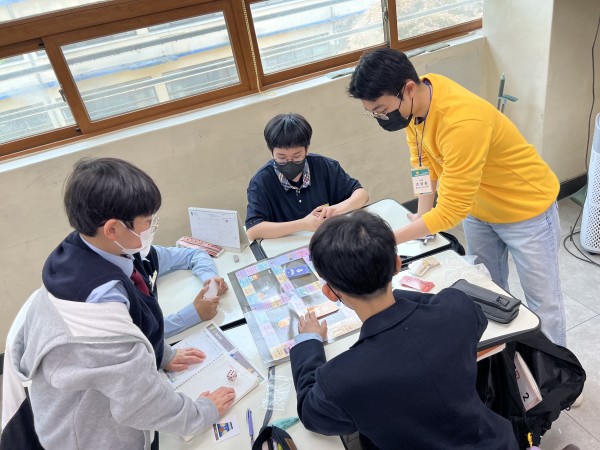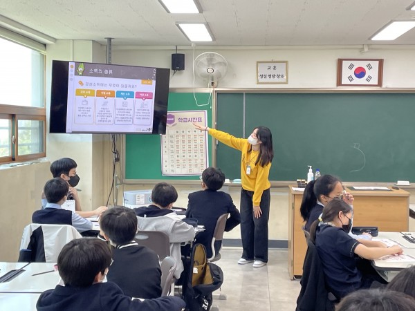 2교시: 조장훈 단원이 교구 수업을 진행하였습니다. 보드게임 형식의 게임을 통해 학생들이 수업 시간에 배운 내용을 복습하고, 돈의 기능과 합리적소비에 대해 이해하는 시간을 가졌습니다.