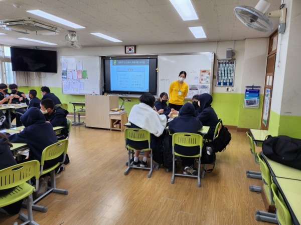 1교시: 박성우 단원이 ‘합리적 소비와 자산관리’ 교재를 사용하여 수업을 진행했습니다. 아이들의 갑작스러운 질문에도 차분함을 유지하며 이해하기 쉽게 잘 설명해주었습니다.