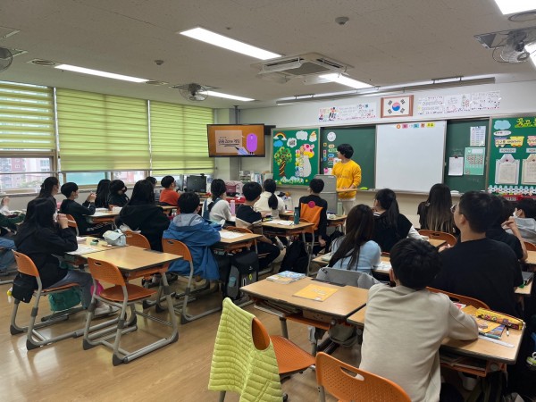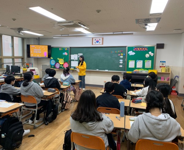 김가현 단원이 <금융을 알고, 투자를 해요> 교재를 바탕으로 수업을 진행했습니다. 금융기관의 역할, 저축과 투자의 의미와 종류에 대해 학생들의 눈높이에 맞춰 이해하기 쉽게 설명해주었습니다. 학생들이 금융기관을 이용해본 경험에 대해 이야기하거나, 학교 근처의 여러 금융기관을 지도에서 함께 찾아보며 소통했습니다. 특히 학급 학생들이 모두 수업에 적극적으로 참여할 수 있게 발표할 기회를 주고, 단원 본인의 경험을 들려주며 학생들이 지루하지 않고 즐겁게 수업에 집중할 수 있게 도왔습니다. 학생들과 교재를 통해 복습하는 시간을 가지면서 수업을 마무리하였습니다.