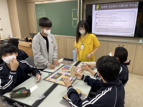 2교시: 고다경 단원이 교구 수업을 진행하였습니다. 보드게임 형식의 게임을 통해 학생들이 수업 시간에 배운 내용을 복습하고, 돈의 기능과 효율적소비에 대해 이해하는 시간을 가졌습니다.