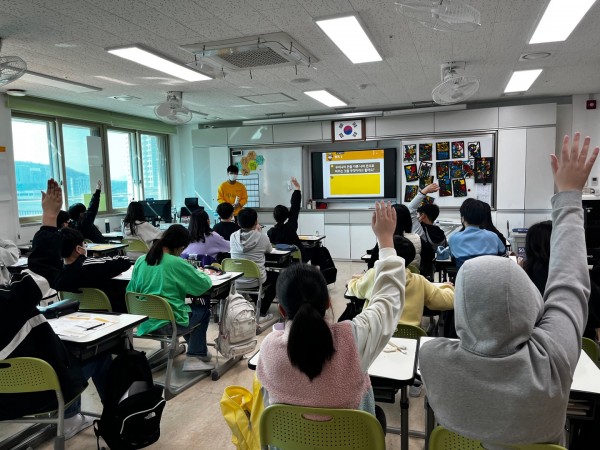 2교시: '돈 카드' 게임을 통해 조별 활동으로 여러 나라의 화폐를 맞추면서 쉽고 즐겁게 게임을 진행하는 시간을 가졌습니다.