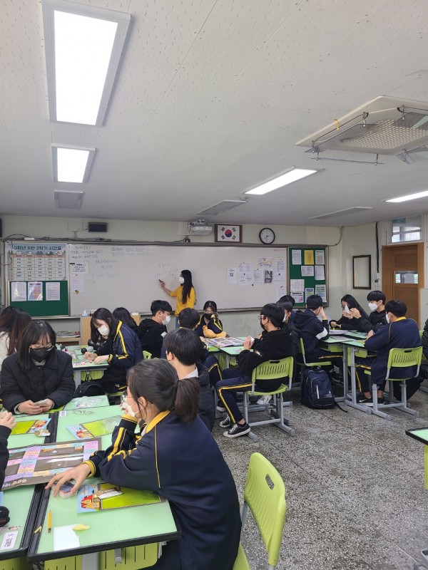 2교시 - 학생 친구들과 모둠을 조성해 '튼튼한 자산관리 아름다운 우리집'이라는 보드게임을 통해 1교시에 배운 내용을 복습했고 게임을 통헤 학생 친구들이 경제를 어렵게 느끼지 않게끔 하는 유익한 시간을 보냈습니다.