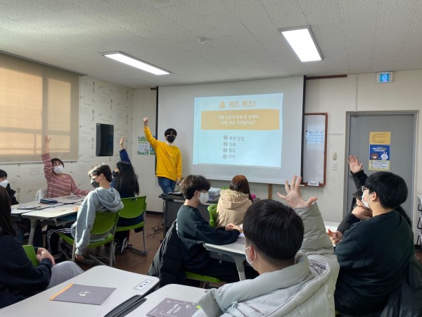 2교시 - 최현민 단원이 진행했습니다. 앞서 배운 경제 개념들을 토대로 보드 게임을 진행하였습니다. 소외되는 아동없이 모두 즐겁게 게임을 즐겼고 마무리 한 뒤 앞서 배운 경제 개념들을 퀴즈를 통해 한번 더 복습하는 시간을 가졌습니다.